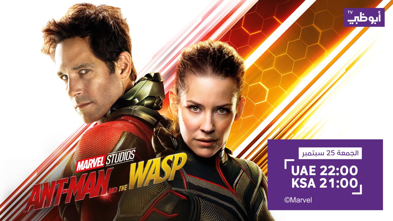 قناة أبوظبي الجزء الثاني من سلسلة أفلام الرجل النملة ضمن إطار من الأكشن والمغامرات لبطل أمريكي خارق بول رود وإيفانجلين ليلي في فيلم Ant Man And The Wasp في سهرة الليلة الساعة